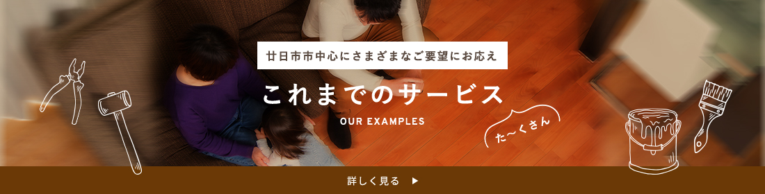 草刈りや家具組み立てなど小さい工事から、小規模解体工事やリフォームなどの大きい工事まで幅広く対応可能。