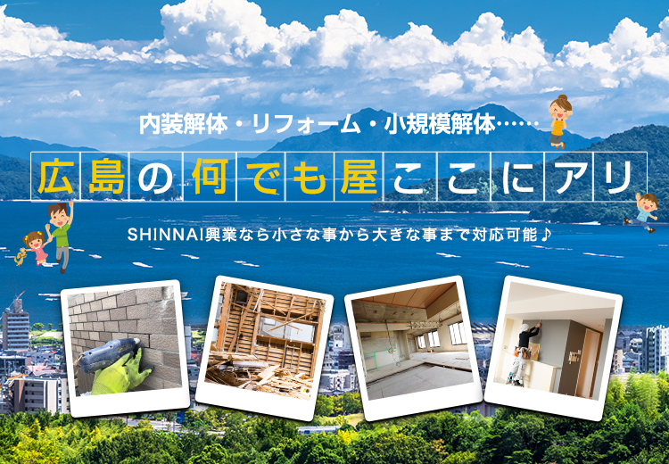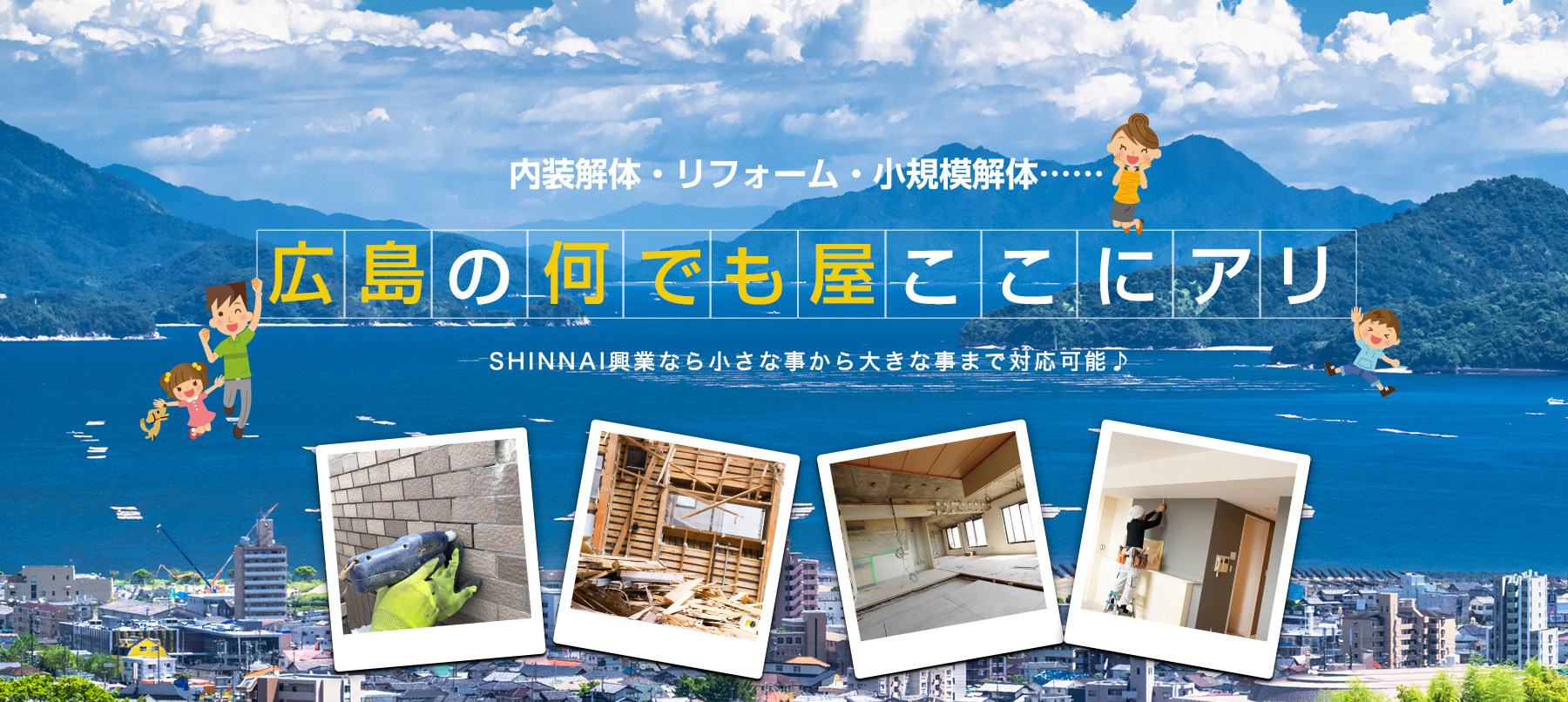 SHINNAI興業は廿日市市を中心に、お客様のお悩みにお応えするあなただけのかかりつけ業者として活動しております。